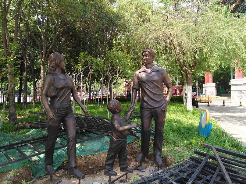 烟台昌林雕塑承制济南市《英雄山广场 》 铸铜雕塑,雕塑以一家三口为主体,表现了亲情和其乐融融的家庭氛围,是近年景观雕塑常见题材,很好的和观者互动,能引起观者共鸣,有较深的影响力和亲和力。