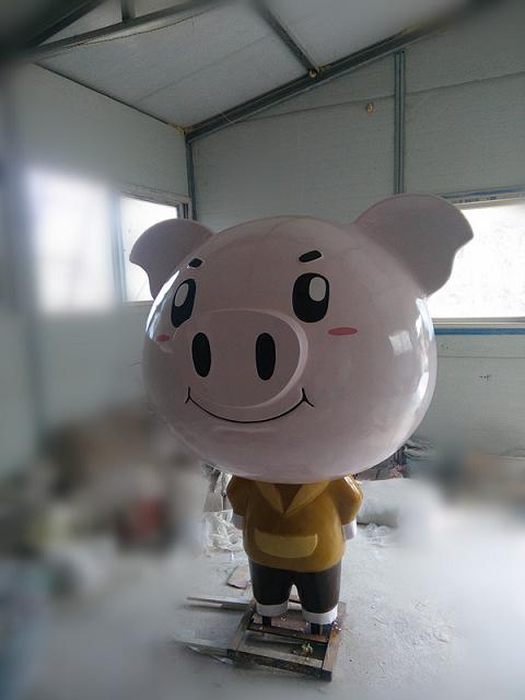 为烟台海阳新农业种植基地制作景观--卡通玻璃钢雕塑《小猪》一对。昌林雕塑(13853539222)2018-4-26