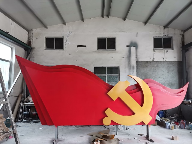 烟台党建雕塑 党建造型, 不锈钢党旗 长5.5米,高2.6米。 不锈钢内置钢构表面烤漆。