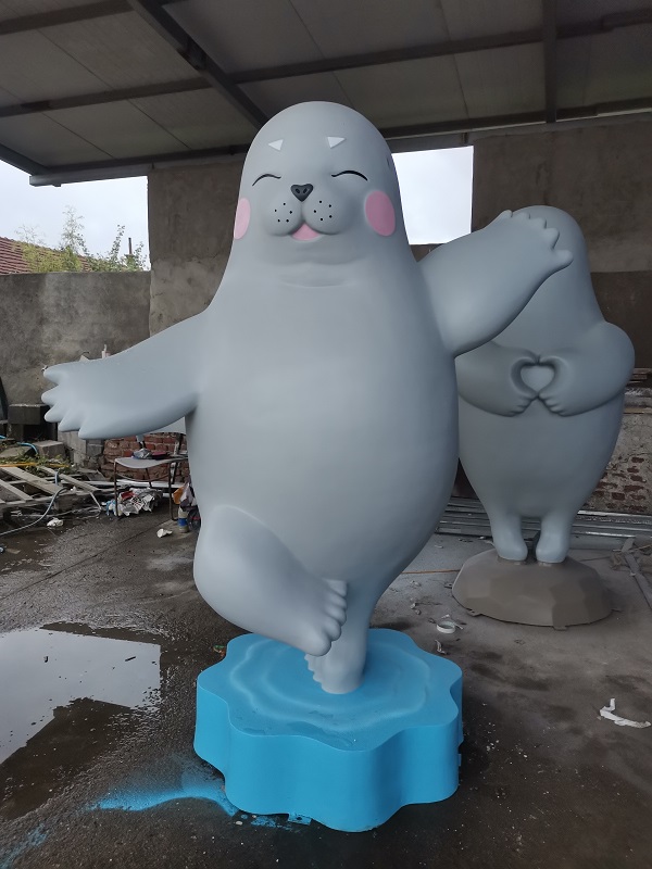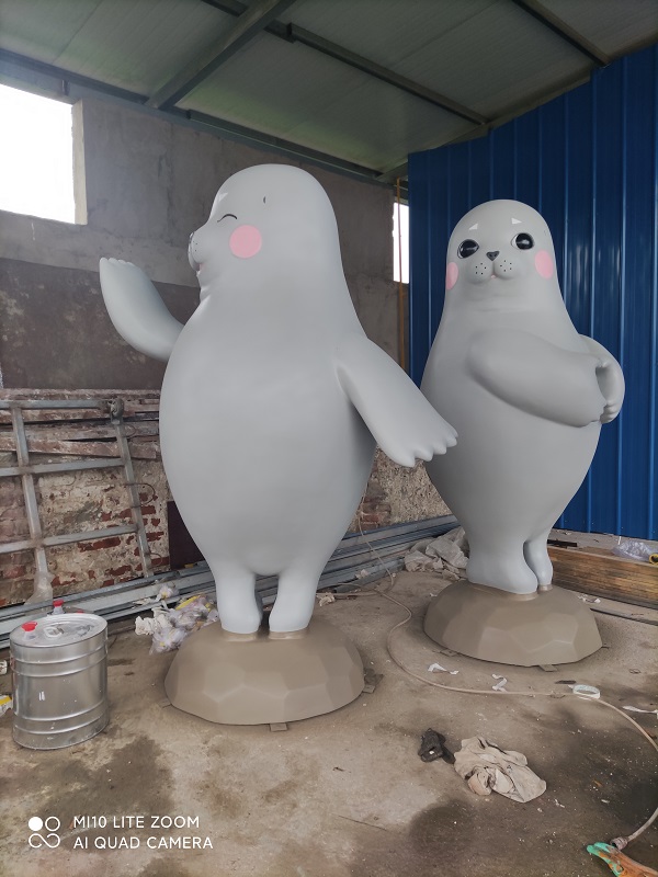 烟台玻璃钢雕塑 蓬莱长岛形象大使斑海豹一组 2021年制作 高1.8米
