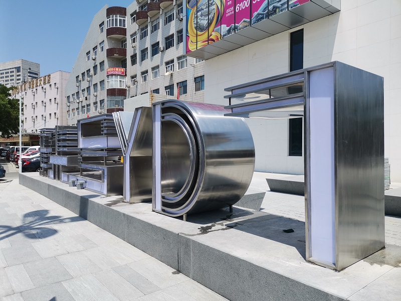 烟台亚东柒 号文创园 大型316不锈钢(3mm厚)字体发光标志景观 高1.8米 高难度加工烟台唯 一制作厂家 昌林雕塑景观